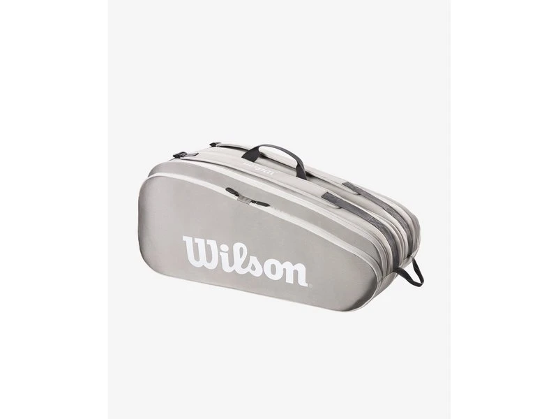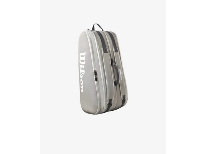 Featuring a fashionable stone color, Wilson’s Tour 12 Pack has two separate zip compartments to carry equipment (up to 12 rackets) and apparel.